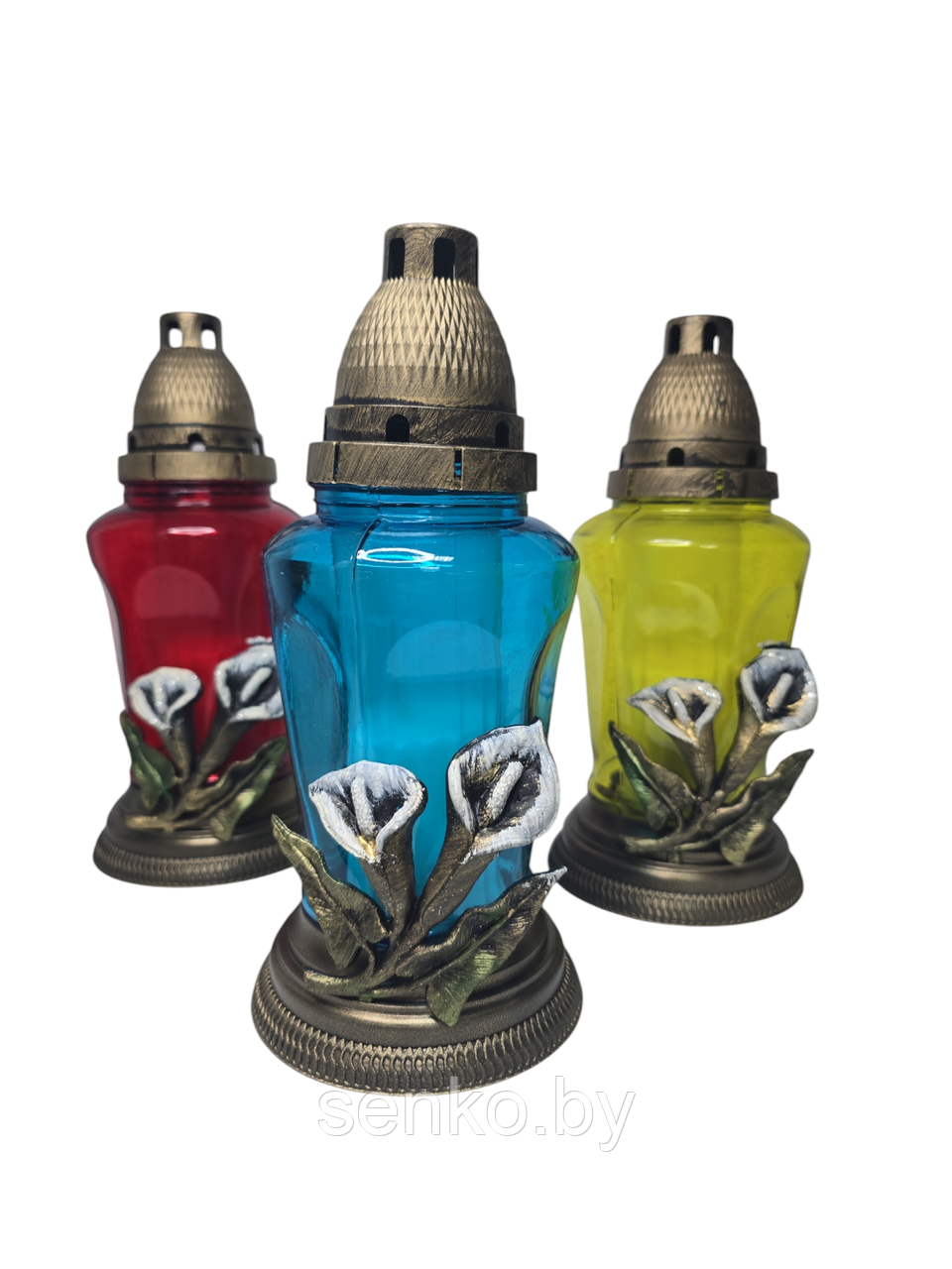 Стеклянная лампада высотой - 245 мм. В упаковке 6 штук лампад разного цвета.